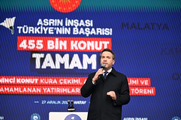Bakan Bayraktar, Hatay’da Cumhurbaşkanı Recep Tayyip Erdoğan ve MHP Genel Başkanı Devlet Bahçeli’nin de iştirak ettiği ‘455 Bininci Afet Konutu Kura Çekimi, Anahtar Teslimi ve Yapımı Tamamlanan Yatırımların Toplu Açılış Töreni’nde konuştu.
