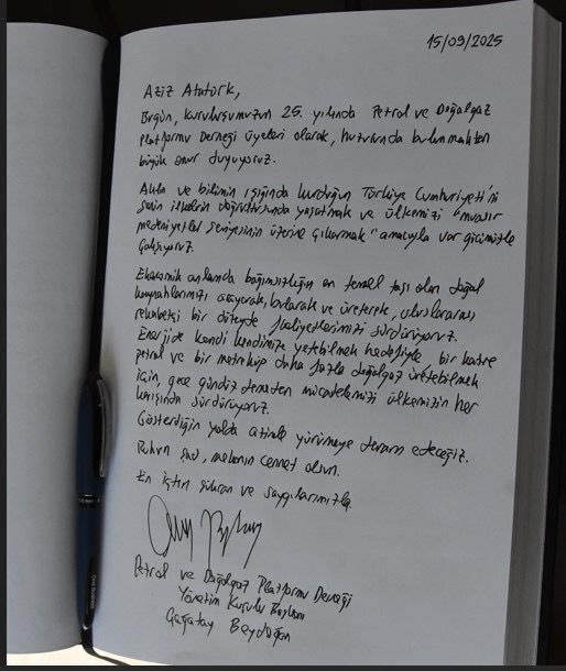 Bugün, kuruluşumuzun 25. yılında, Petrol ve Doğal Gaz Platformu Derneği üyeleri olarak, huzurunda bulunmaktan büyük onur duyuyoruz.