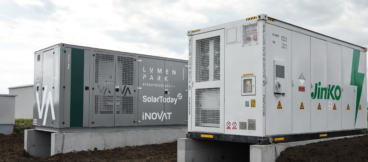 SolarToday’in koordinasyonunda Macaristan’da devreye alınan 3.8 MWh’lık enerji depolama sistemi, JinkoESS, Inovat MV Skid ve PowerKonnekt EMS teknolojilerini bir araya getirerek Avrupa aFFR pazarında yeni bir standart oluşturdu.