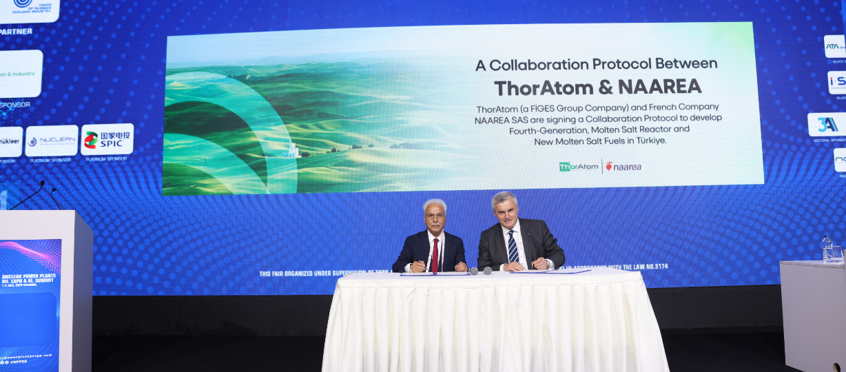 NAAREA (Nuclear Abundant Affordable Resourceful Energy for All – Herkes İçin Erişilebilir Ekonomik ve Kaynakları Verimli Kullanan Nükleer Enerji) ve FİGES Grup şirketi ThorAtom arasında imzalanan anlaşma, güvenli ve verimli nükleer enerji teknolojilerinin geliştirilmesine yönelik ortak bir vizyonu yansıtıyor. İmza törenine, FİGES ve ThorAtom Yönetim Kurulu Başkanı Dr. Tarık Öğüt ile NAAREA CEO’su Jean-Luc Alexandre katıldı.